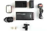 AD200 ima promjenjivu flash glavu sa velikim kapacitetom baterije: 14.4V 2900mAh lithium-ion baterija omogućuje do 520 bljesaka najveće snage s 0.01 – 2.1 s vremena punjenja