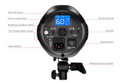 Sync: TR-V6/TR-A9/3.5 sync cord/Built-in 2.4 GHz wireless receiver/fotočelija