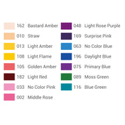 -It contains 30 gels in 15 different colors (Bastard Amber,Straw,Light Amber, Light Flame, Golden Amber, Light Red, No Color Pink, Middle Rose, Light Rose Purple, Surprise Pink, No Color Blue, Daylight Blue, Primary Blue, Moss Green, Blue Green), 2x each color.